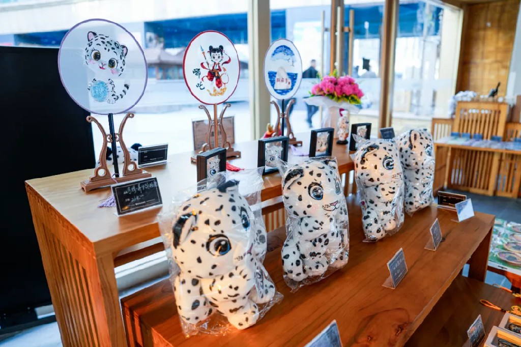 走出展品区,便来到了充满趣味的非遗实践区。在这里,可亲手触摸非遗温度,打破传统技艺的边界,以跨界融合的巧思激活非遗的全新活力。你可以选择景泰蓝掐丝画,也可以pick河湟刺绣,在非遗传承人的悉心指导下,穿针引线、掐丝点蓝,亲手完成一幅属于自己的作品。而创作的灵感绝不局限于传统的花鸟鱼草,西宁的萌趣雪豹ip“宁萌”,也能化作绣布上灵动的身影、金丝间鲜活的模样,让古老技艺与现代审美碰撞出奇妙火花。