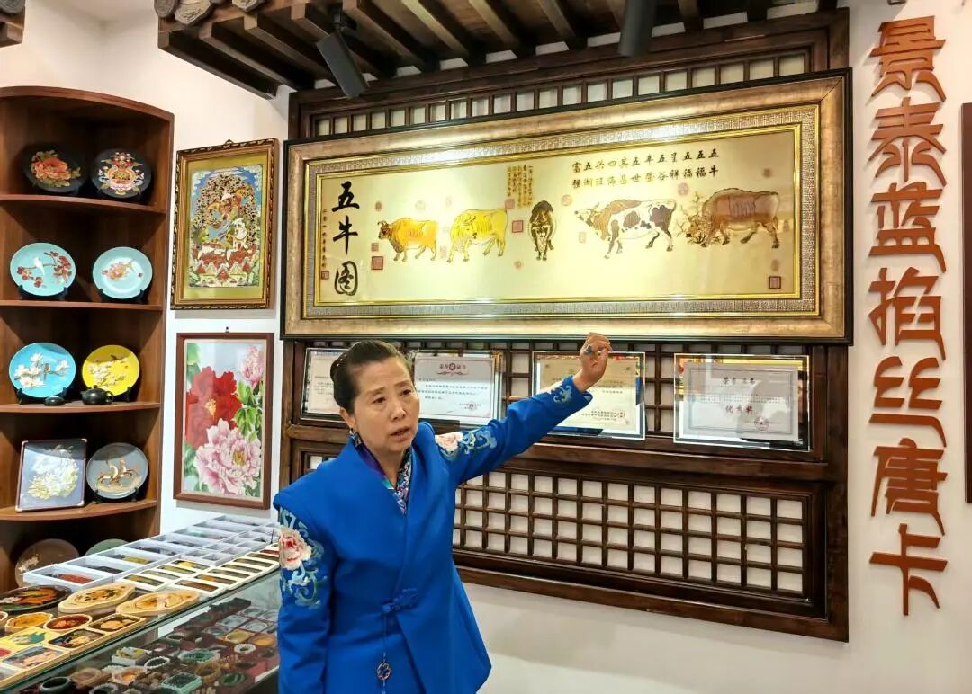 走在工坊的展示区内,各种手工艺产品栩栩如生,八门拳的刚柔并济,扁担酿皮的匠心独运,河湟刺绣的精巧细腻,不同民族的文化瑰宝在这里交相辉映,共同诉说着这片土地上各民族交往交流交融的生动故事。与此同时,东城·非遗共富工坊还积极探索非遗传承对铸牢中华民族共同体意识的价值功能,将非遗体验与各类活动深度交织。截至目前,已举办“沐暖阳”围炉煮茶、“登梦中雪山·观大湖胜景”青海冬季旅游网络名人行、忆苦思甜、老物件写生、非遗剪纸等38场活动,近千人参与其中。工坊通过开设河湟刺绣、掐丝唐卡等非遗技能培训班,以“传承人互动+手工作坊+体验培训”的形式,让非遗从拍照打卡向深度体验转变,目前已培育在外从业人员及传习人315人。